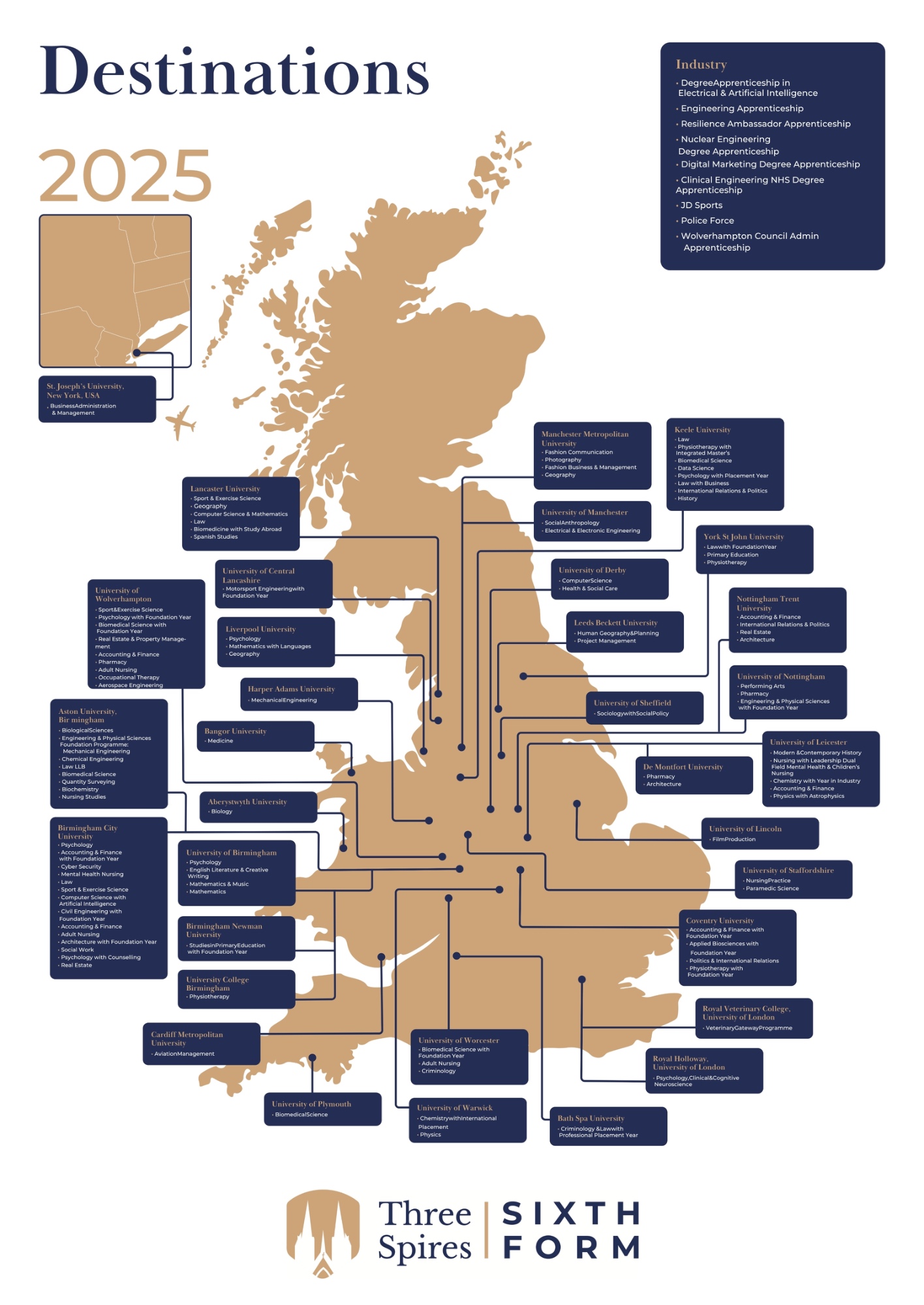 Please see the list below showing the University destinations of our students over the past 12 months.
